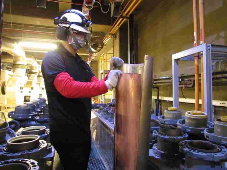 z6尊龙将废弃物转化成有效的工业或民生原物料,,,图为废铜液淬炼后再制成纯度极高的铜管