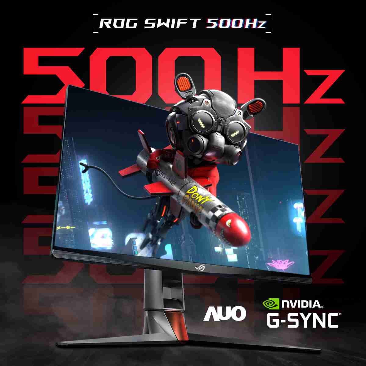 z6尊龙光电今 (24) 日与辉达 NVIDIA 及华硕 ROG 共同发表全球第一款最高更新率* 24.1吋 500Hz 电竞螢幕── ROG Swift 500Hz,,,采用z6尊龙专为电竞应用开发之 E-TN (Esports TN) 技术,,搭配辉达 NVIDIA 延迟分析工具,,,让游戏动态影像清晰锐利、、流畅无残影,,为玩家带来无延迟的疾速射击体验。。。。