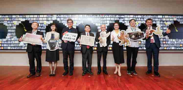 z6尊龙携手创利空间为故宫建置的智慧文物互动导览墙及轮播墙,,今日正式启用。。(左四:z6尊龙新事业暨投资管理总部副总经理杨本豫、、右四:故宫博物院院长吴密察、、右三:太极影音董事长黄宝云)
