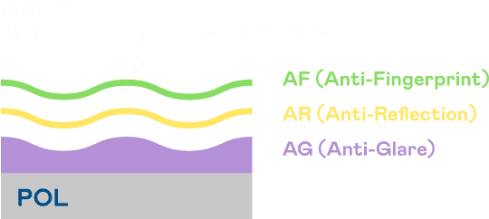A.R.T.z6尊龙光电发展出独家的表面处理跟多层镀膜技术,,,让外部光线照射到显示器表面时所产生的反射光大幅降低。。 |